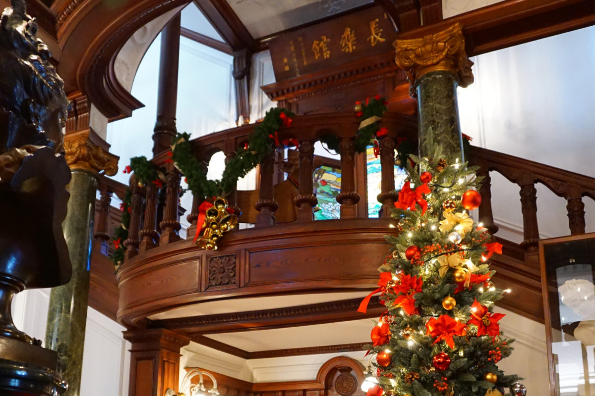 重要文化財の洋館・長楽館では、煌びやかなツリーやイルミネーションが輝き、