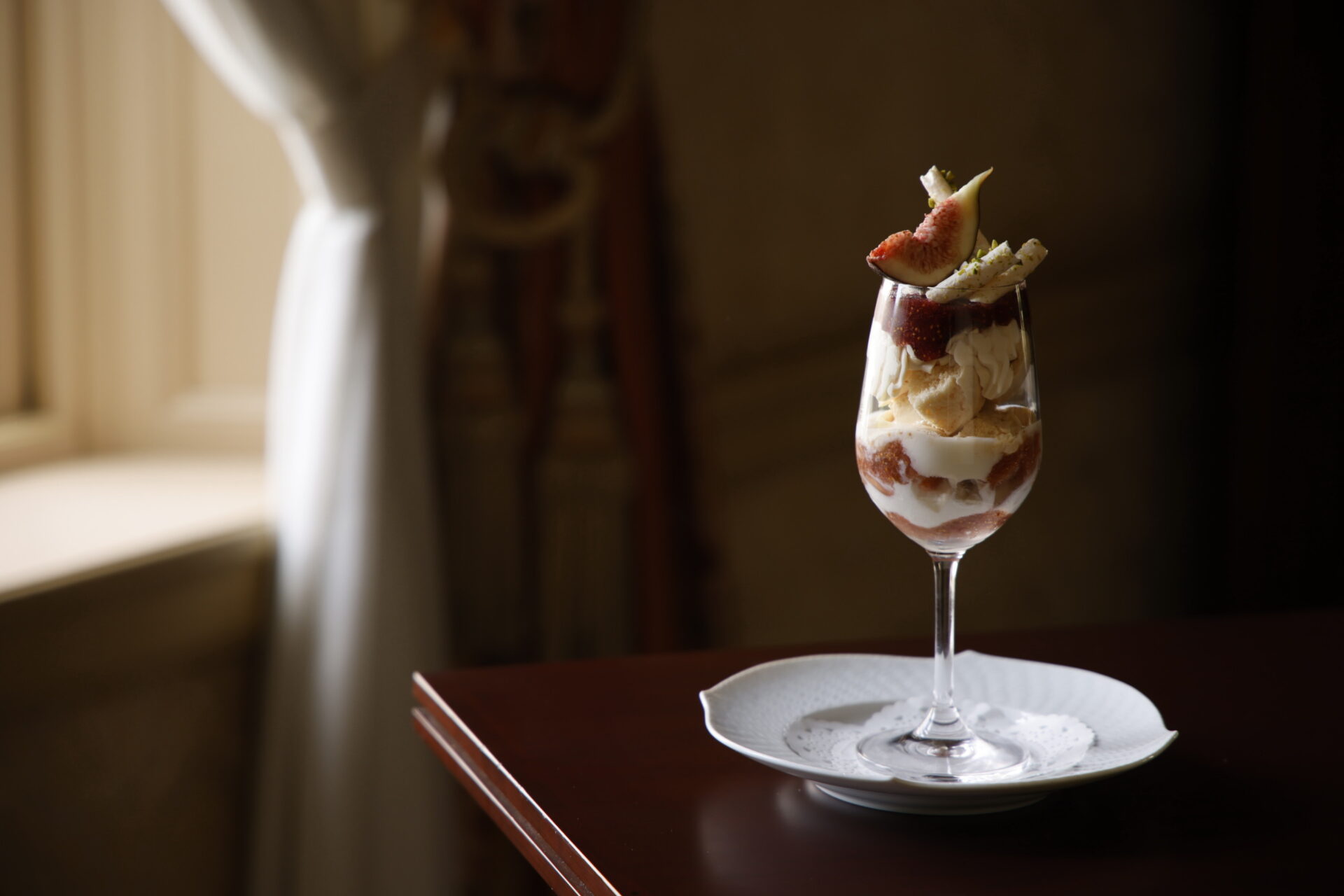 2024年に銀座三越で開催された「〜世界のKYOTO、KYOTOから世界へ〜 GINZA キョウト展」にてご好評をいただいた「いちじくと紅茶のパフェ」が、この秋、デザートカフェ長楽館に限定登場いたします。