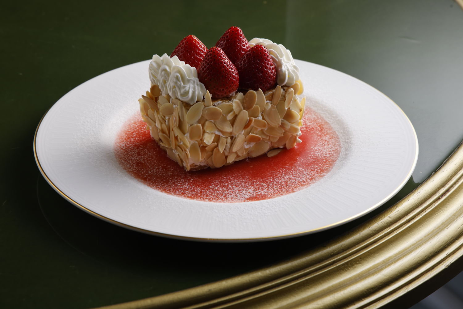 香ばしく焼き上げた自家製パイに、濃厚なカスタードクリームといちごを重ねた、冬だけのミルフィーユ仕立て。