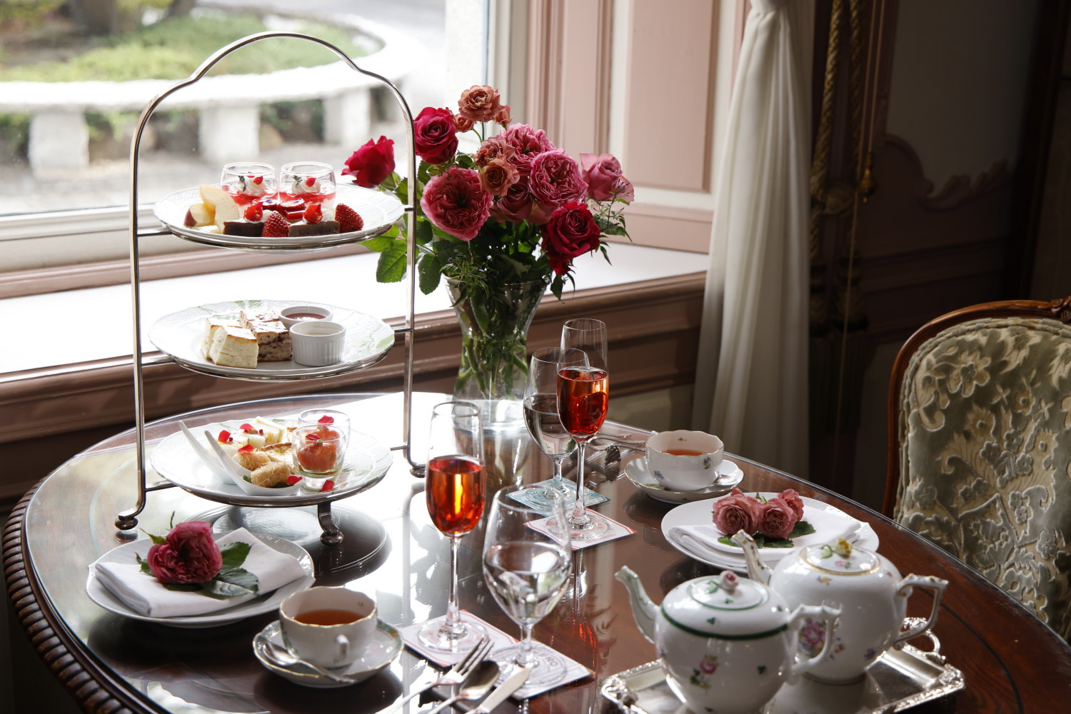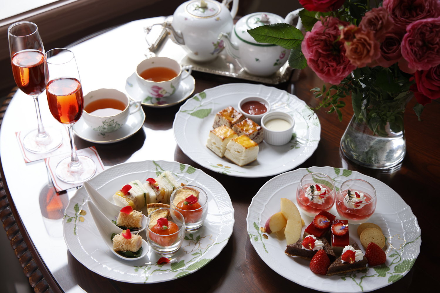 華やかな薔薇の香りに包まれる、優雅な春のアフタヌーンティーをお楽しみください。