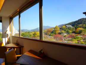 北向きの窓は国の名勝円山公園に面しており、東山と京都の北側の景色を見渡せます。