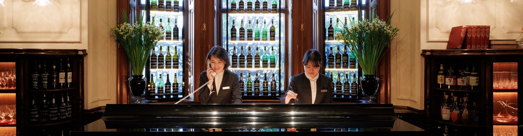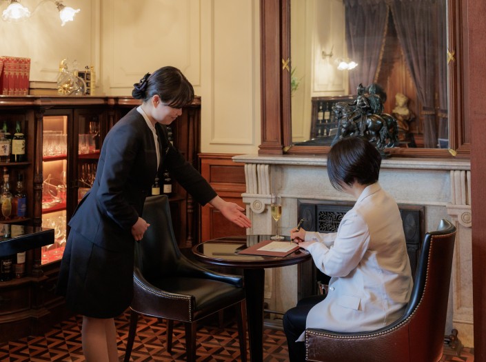 予約受付やフロント業務、コンシェルジュ業務等、宿泊に関する業務を一貫して担当します。大きなホテルでは業務ごとに担当が分かれているのに対し、ホテル長楽館ではお客様お一人お一人のお出迎えからお見送りまで寄り添えることが魅力です。