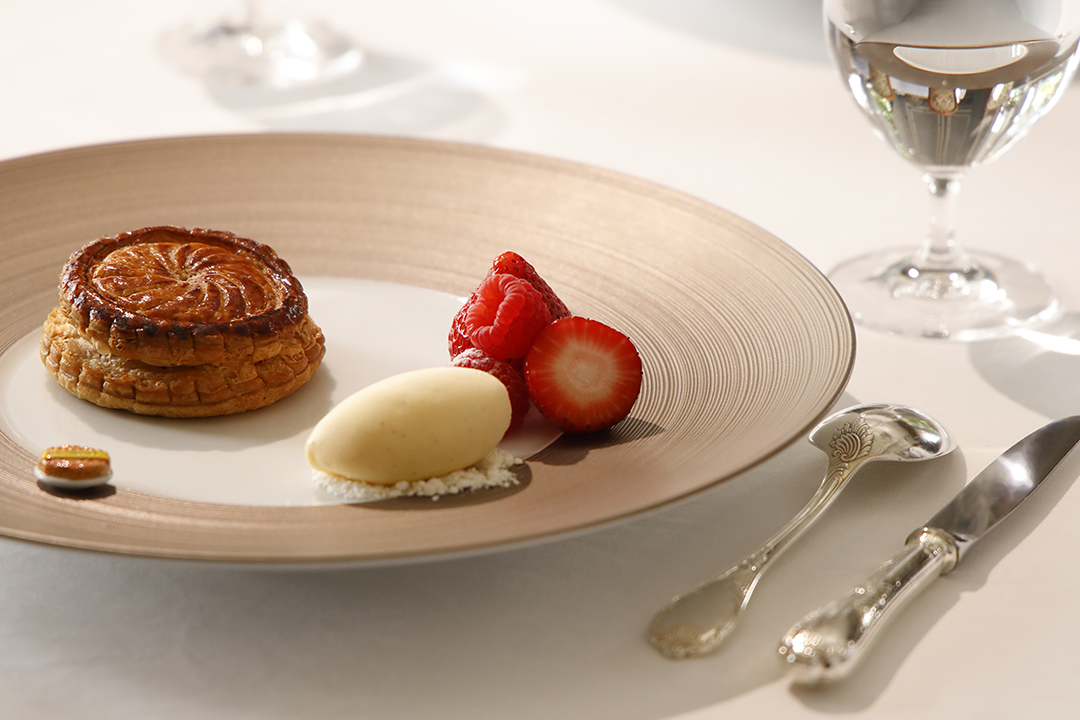 1月の初詣プライベートプランでは、京都ならではの白みそのお雑煮やフランスの伝統菓子ガレット・デ・ロワを組み込んだ特別コース料理を。