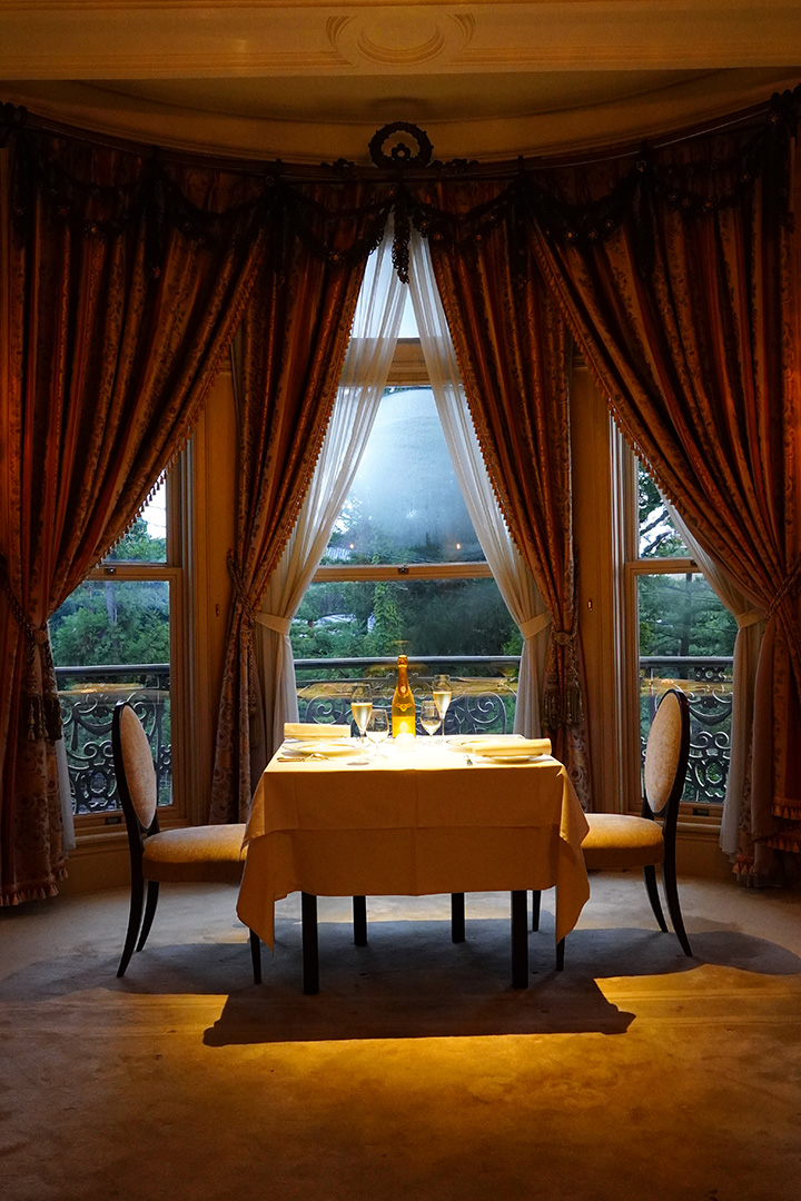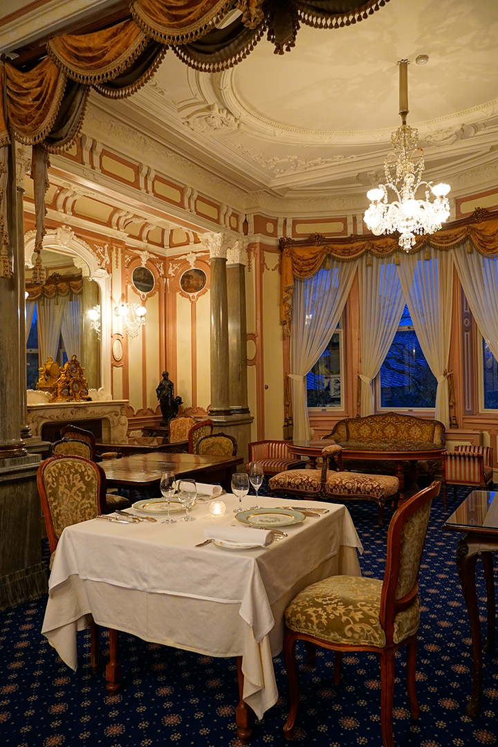 迎賓館としての歴史を受け継ぐ洋館で、華やかな一夜をお届けします。黒トリュフを用いたメインディッシュが楽しめる3つのコースに加え、1日1組様限定で個室でのご提供もご用意。特別な時間を彩るディナーを、重厚な空間とともにお楽しみください。