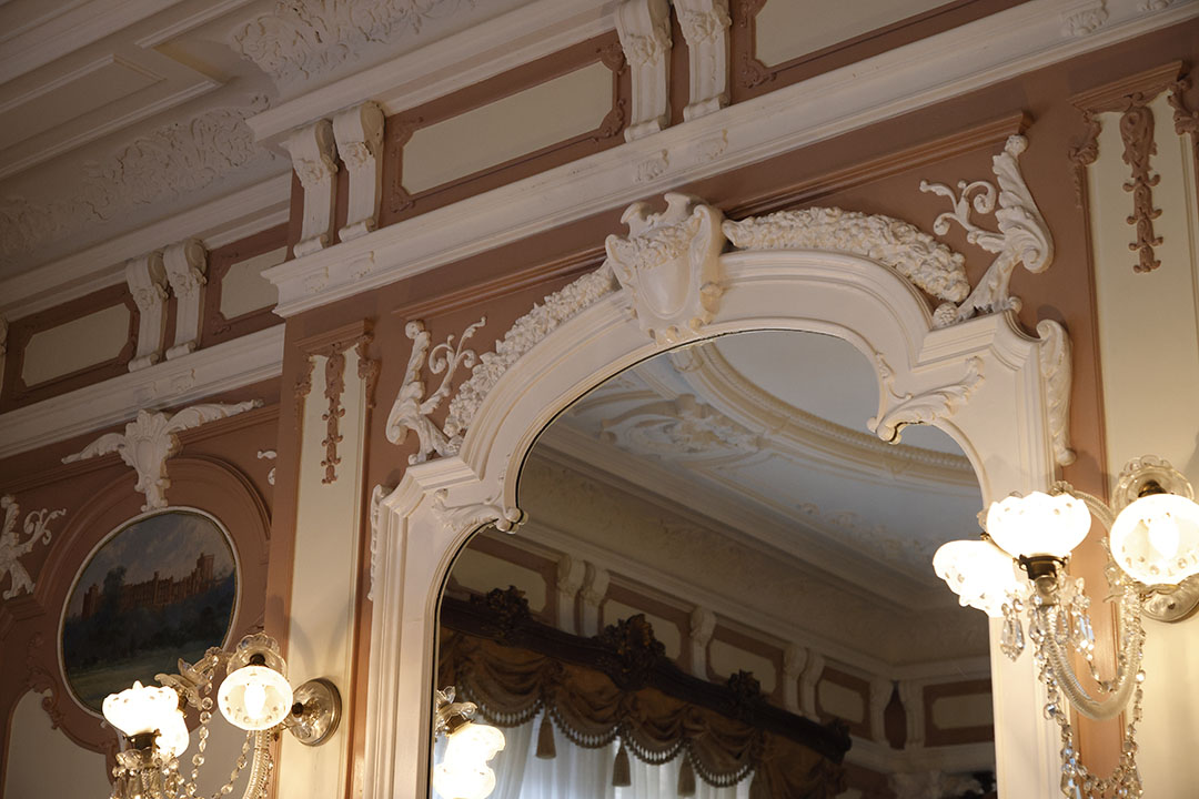 長楽館竣工当時、客人を迎え入れ、お茶と会話を愉しむための応接間として設えられた「迎賓の間」。ロココ様式の優美な内装や、バカラ社製のシャンデリア、明治期から受け継がれる調度品に囲まれた空間は、時代を超えてなお特別なひとときを演出します。